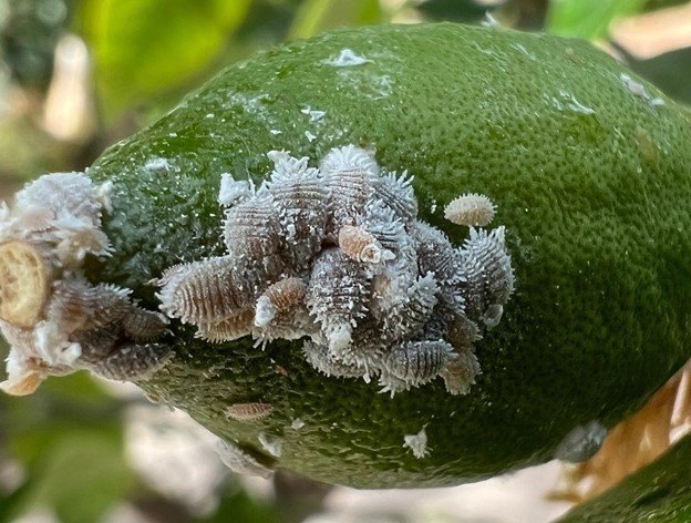 The most obvious sign is white cottony clusters attached to stems or leaf bases. They also produce honeydew, a sticky substance that can attract mold growth. Leaves often yellow and fall prematurely during infestation.
