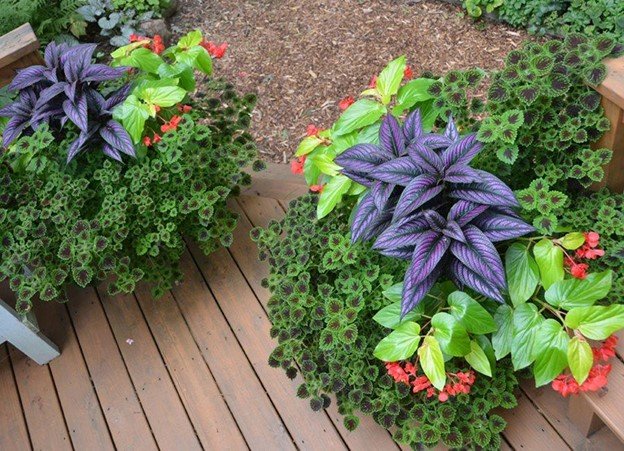 • Persian Shield: high-impact focal plant with metallic tones